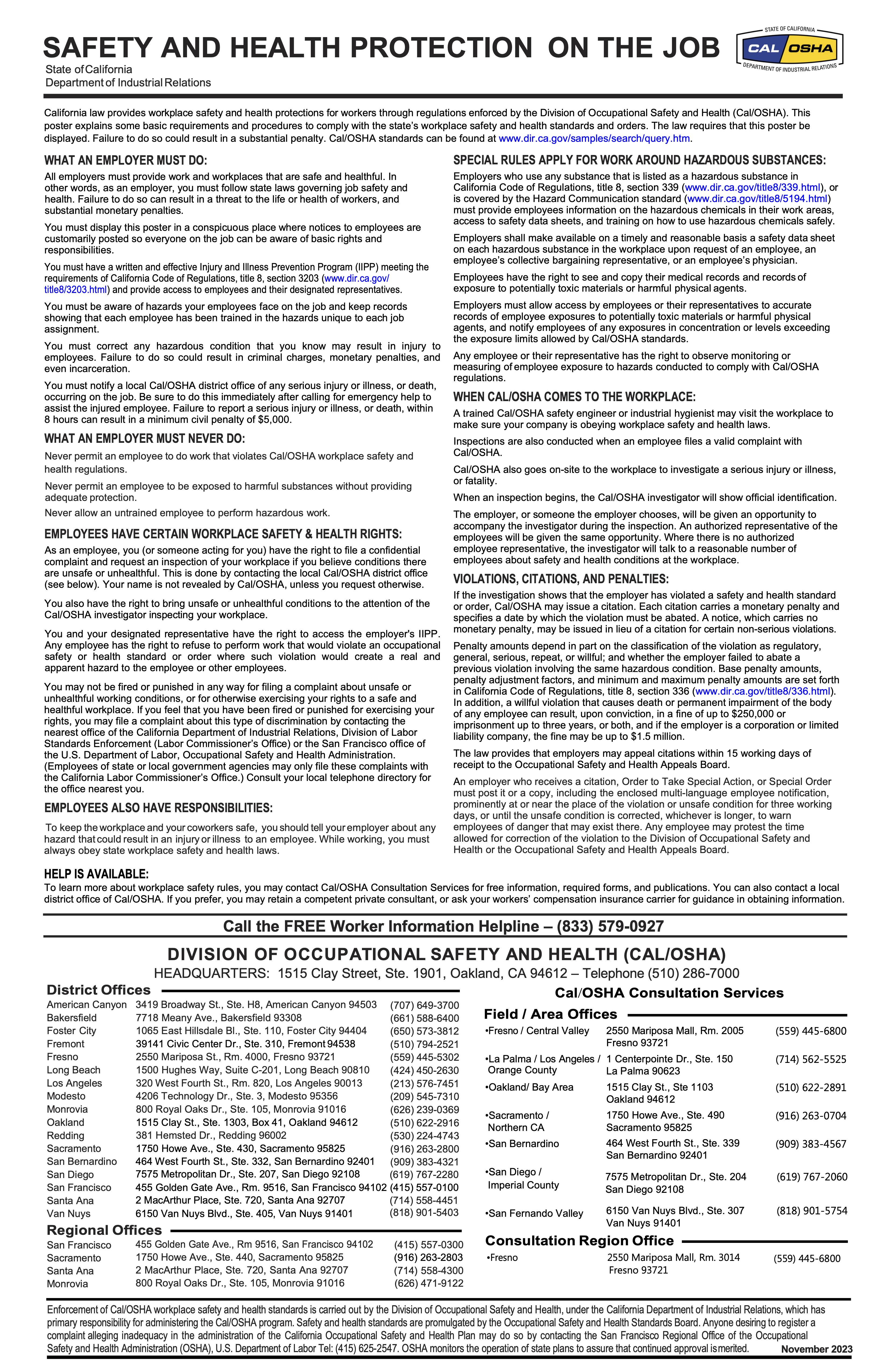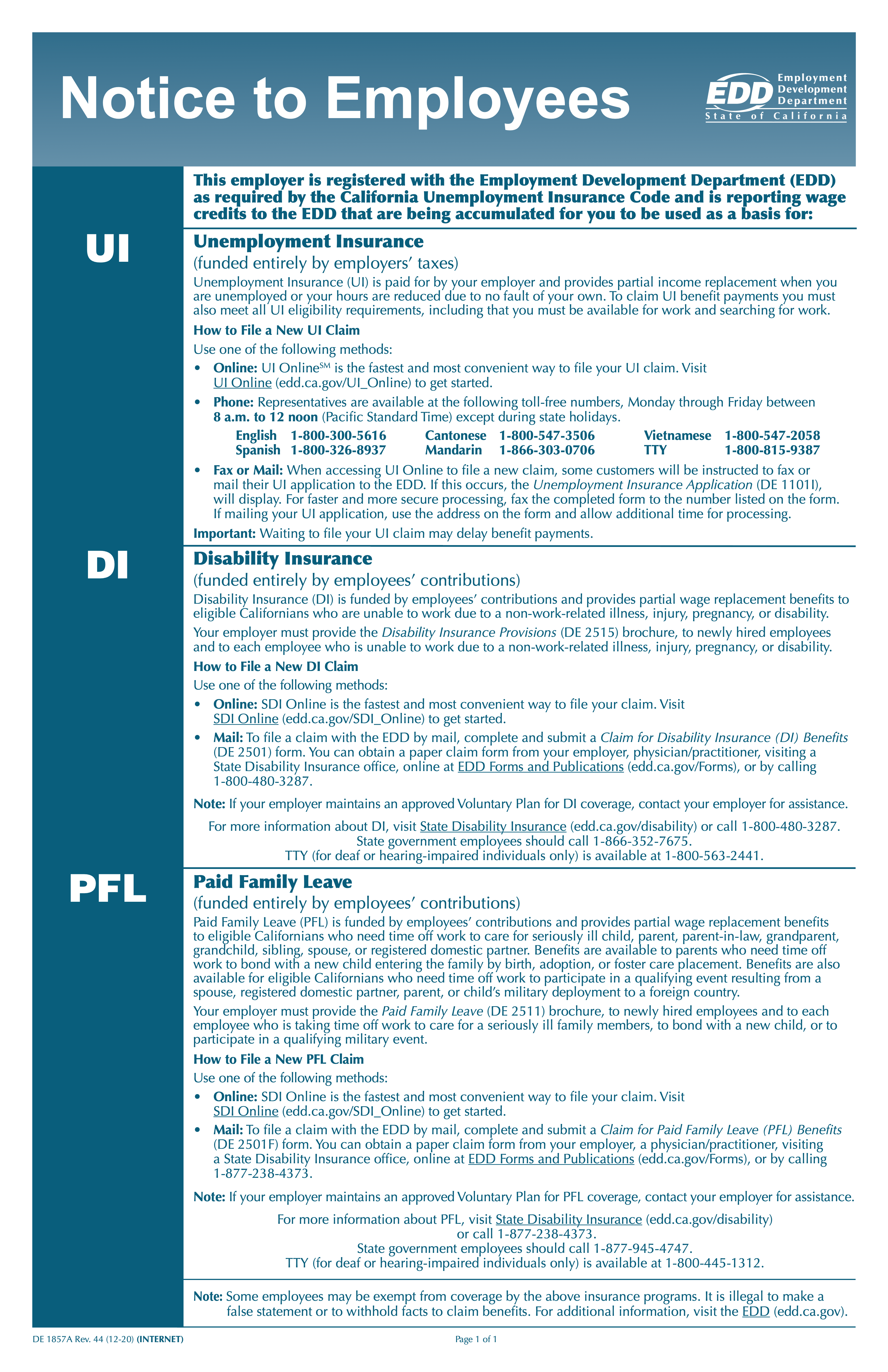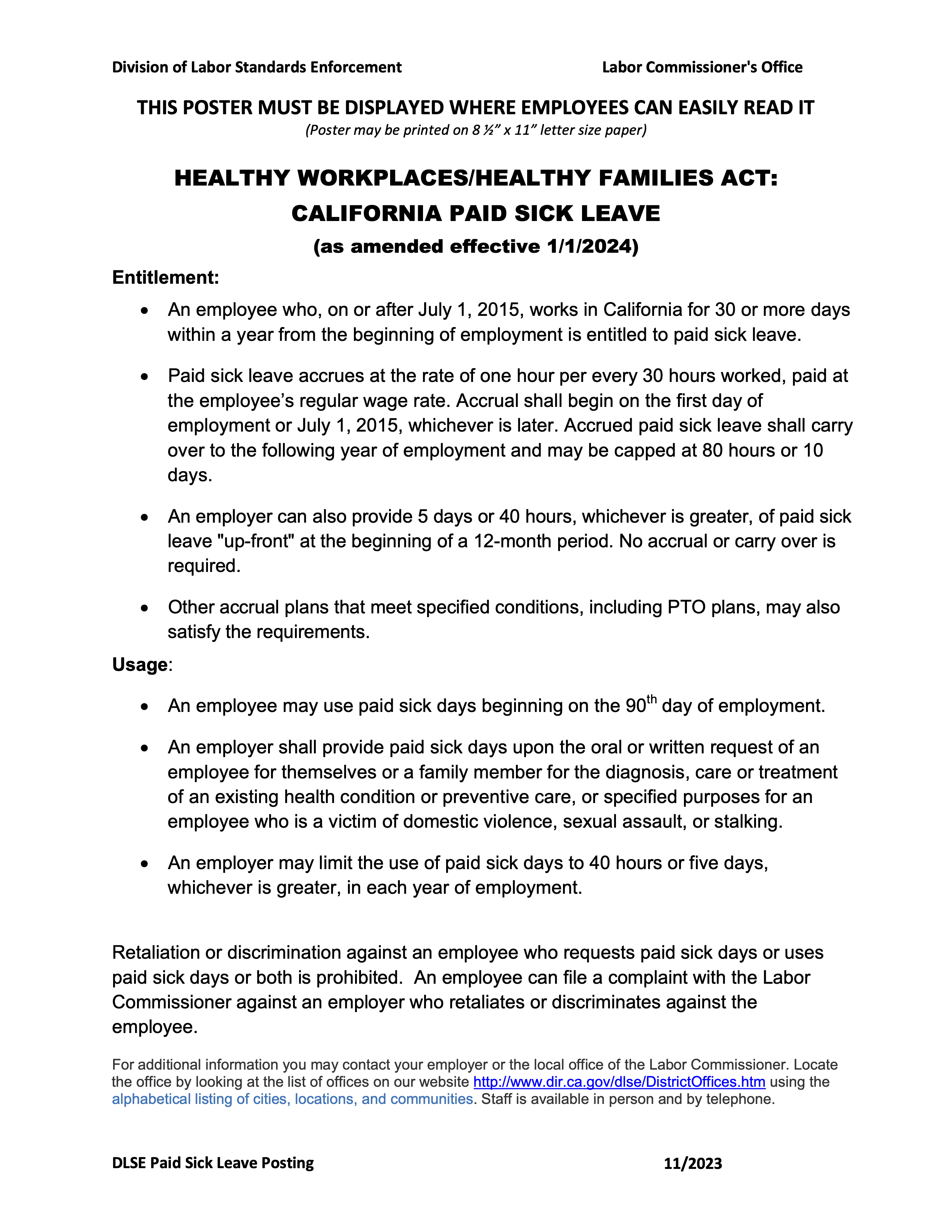 State Labor Law PostersCaliforniaOn this pageCalifornia State Labor Law PostersCalifornia State Labor Law Posters Minimum Wage Notice to Employees Paid Sick Leave Safety Health Protection Unemployment Insurance Benefits Transgender Rights Discrimation Workers Compensation