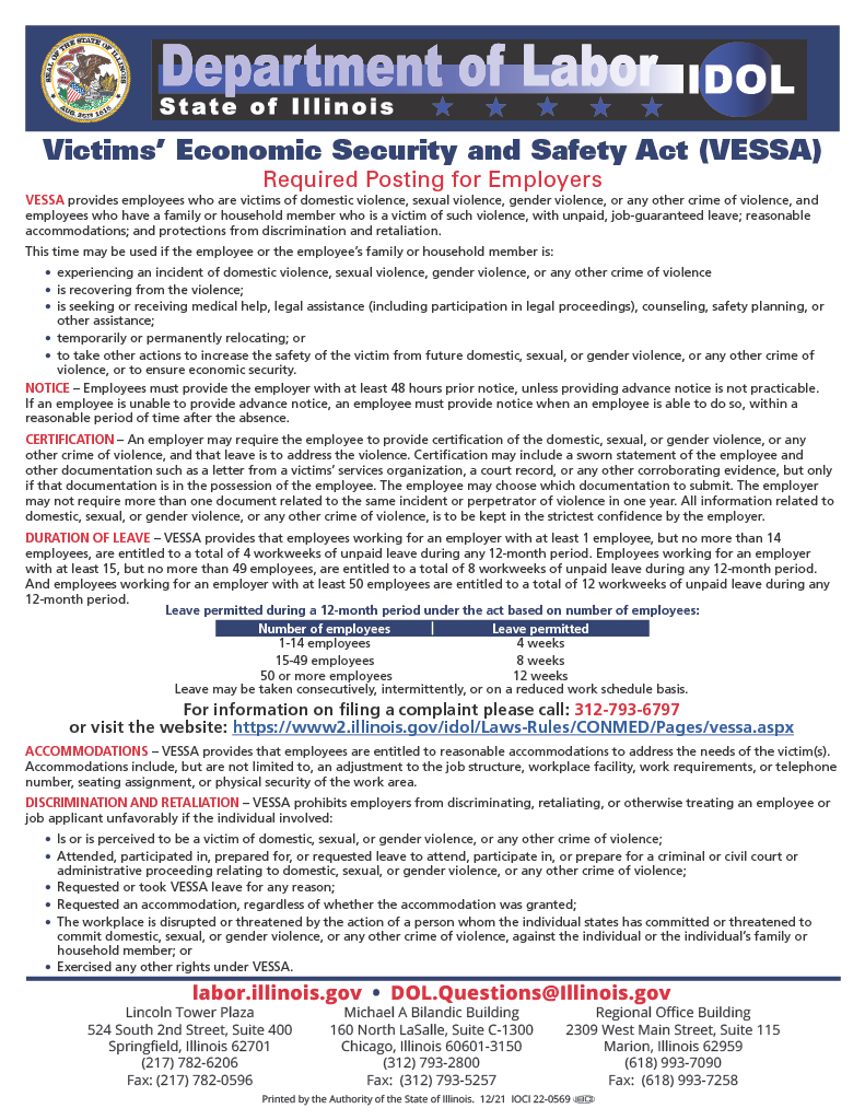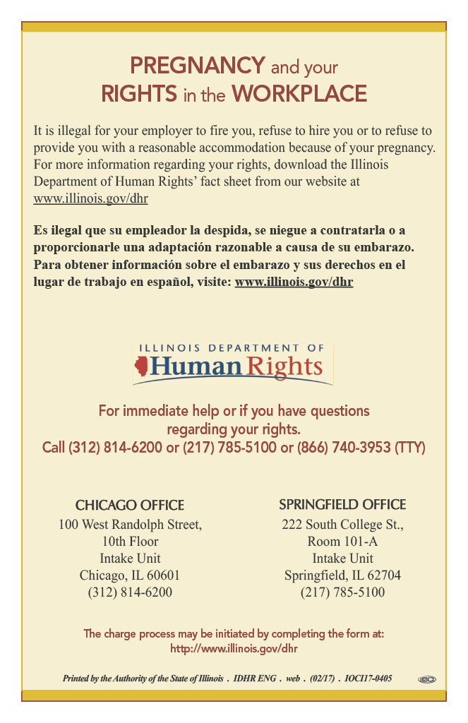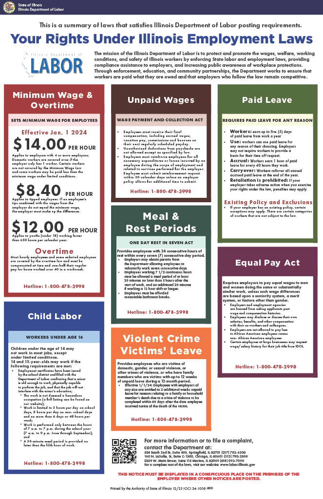 State Labor Law PostersIllinoisOn this pageIllinois State Labor Law PostersIllinois State Labor Law Posters Know Your Rights Department of Labor Notice Unemployment Insurance Pregnancy Rights