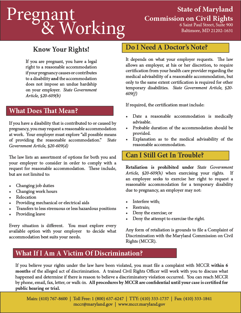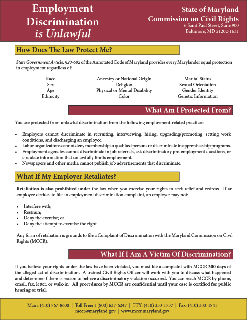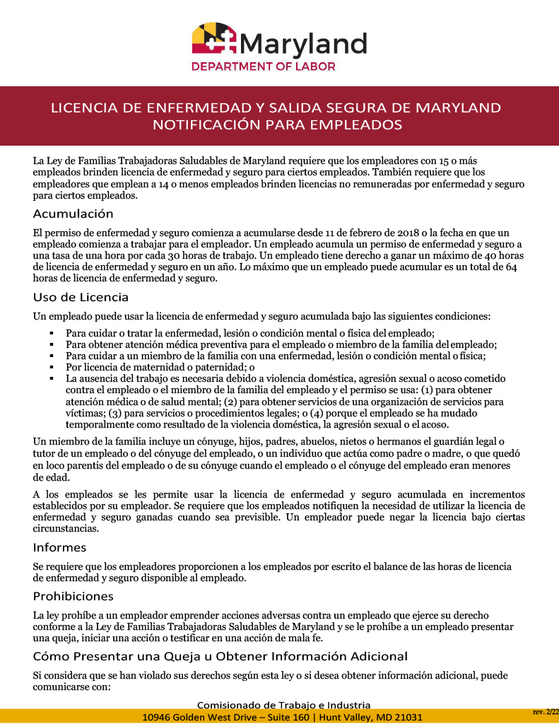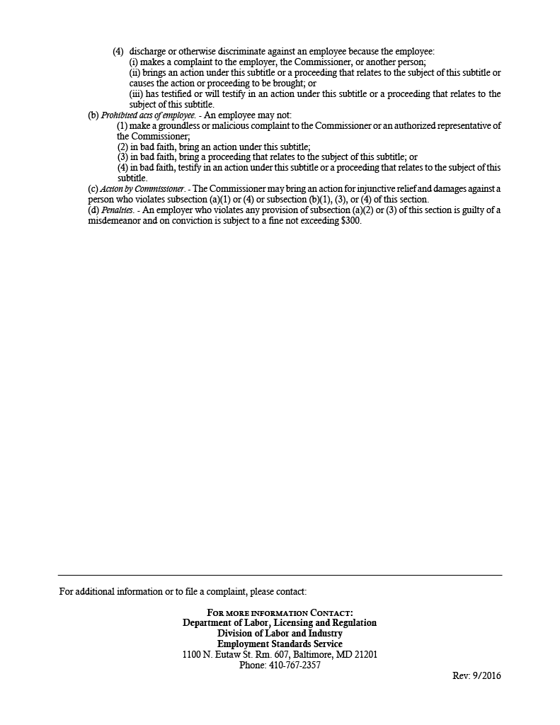 State Labor Law PostersMarylandOn this pageMaryland State Labor Law PostersMaryland State Labor Law Posters Minimum Wage and Overtime Worker's Compensation Employment Discrimation is Unlawful Healthcare Insurance Coverage Pregnant and Working Sick and Safe Leave Equal Pay Sick Leave