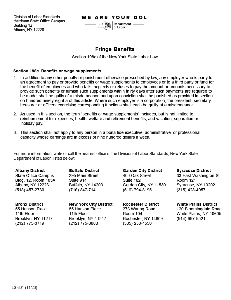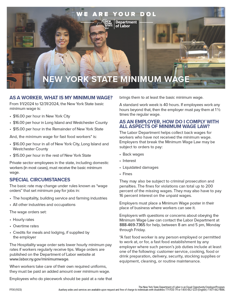 State Labor Law PostersNew YorkOn this pageNew York State Labor Law PostersNew York State Labor Law Posters Minimum Wage Safety and Health Fringe Benefits Notice Veterans Benefits Criminal Convictions Records