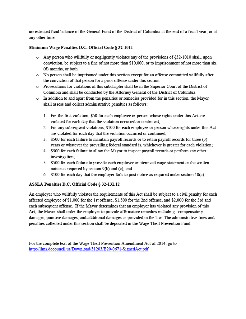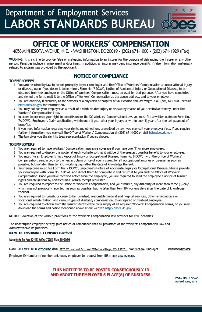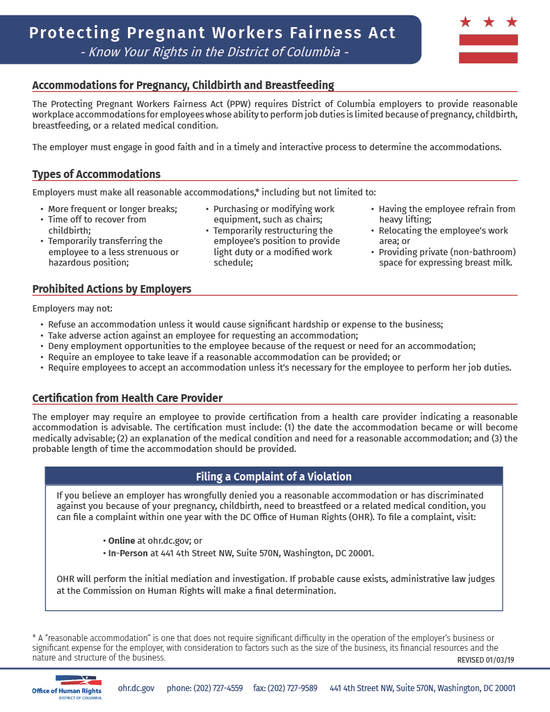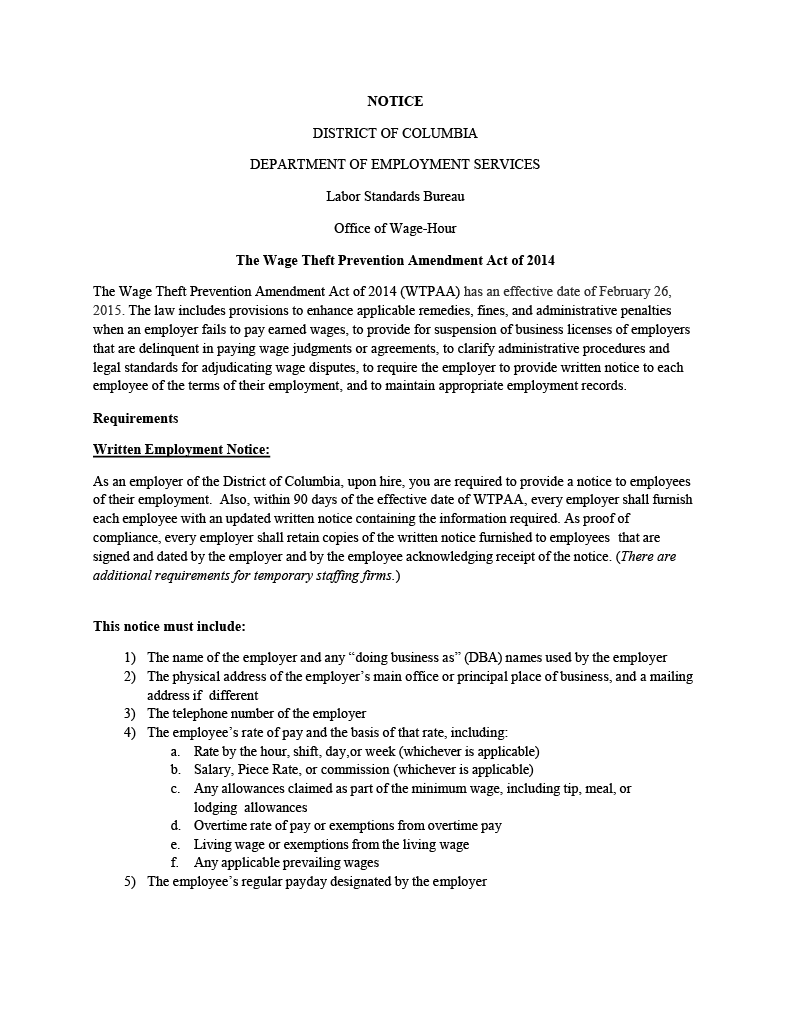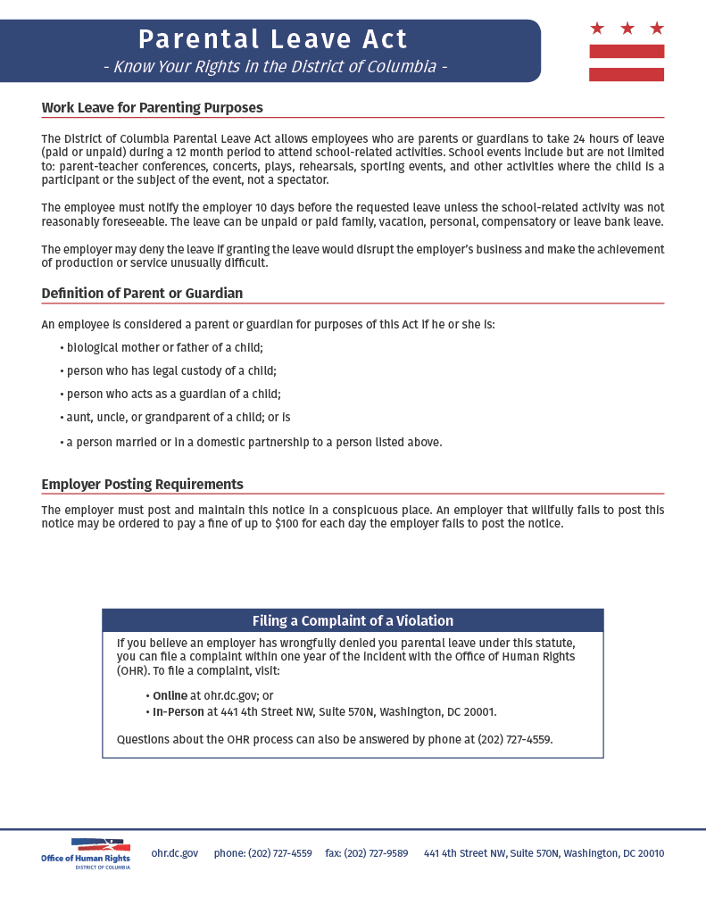 State Labor Law PostersWashington, DCOn this pageWashington, DC Labor Law PostersWashington, DC State Labor Law Posters Equal Opportunity Sick and Safe Leave Paid Family Leave Parental Leave Protecting Pregnant Workers Worker's Compensation Unemployment Compensation Minimum Wage Wage Thef Prevention Act